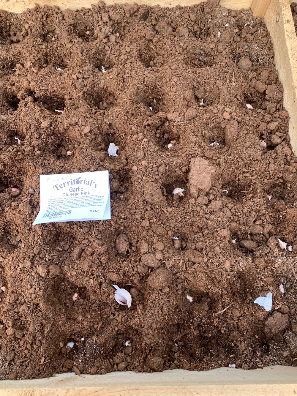It was more than double the amount I expected, so I had to plant a little closer together than I’d wanted (I’d planned on 9 individual cloves per square foot), but that just means green garlic in the spring when I need to thin a bit!