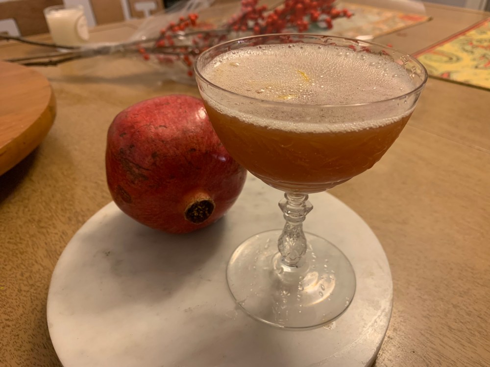 It is incredibly easy to make. I don’t make a lot of cocktails, so I halved his recipe and used 1 cup pomegranate juice, 1 cup sugar, 1 ounce of pomegranate molasses and a 1/2 teaspoon of orange flower water. You simply heat the juice just enough to dissolve the sugar and then stir in the other two ingredients after you remove it from the heat.
