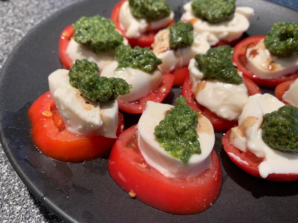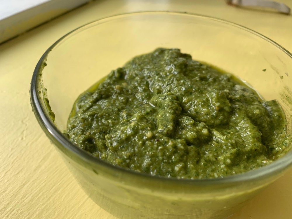 This was wonderful on caprese. Another excellent use is soup au pistou – French vegetable soup topped with a dollop of pesto.