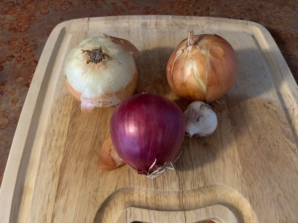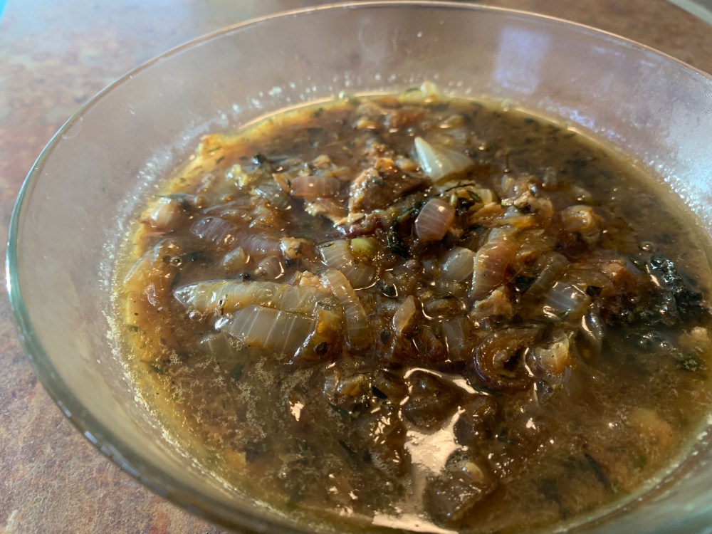 I like to use a good amount of fresh thyme and oregano from the garden to sauté the onions with.