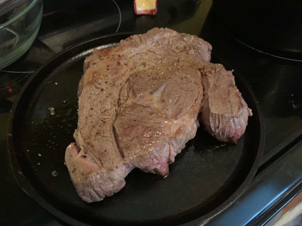 Preheat your oven to 350. Salt and pepper your roast and then brown it in fat on medium high in a Dutch oven or other pan that can go from the burner to the oven. I never seem to get this as seared as I think it should be.