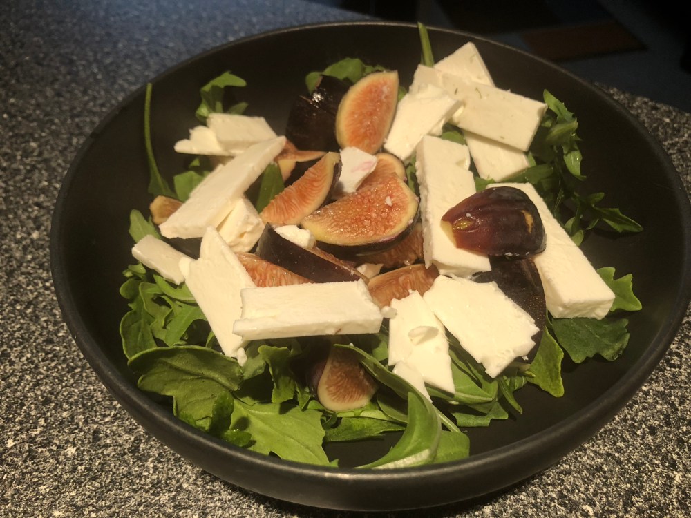 I particularly love this salad with figs, feta and arugula. Sharp peppery tastes contrast well with the fruit.