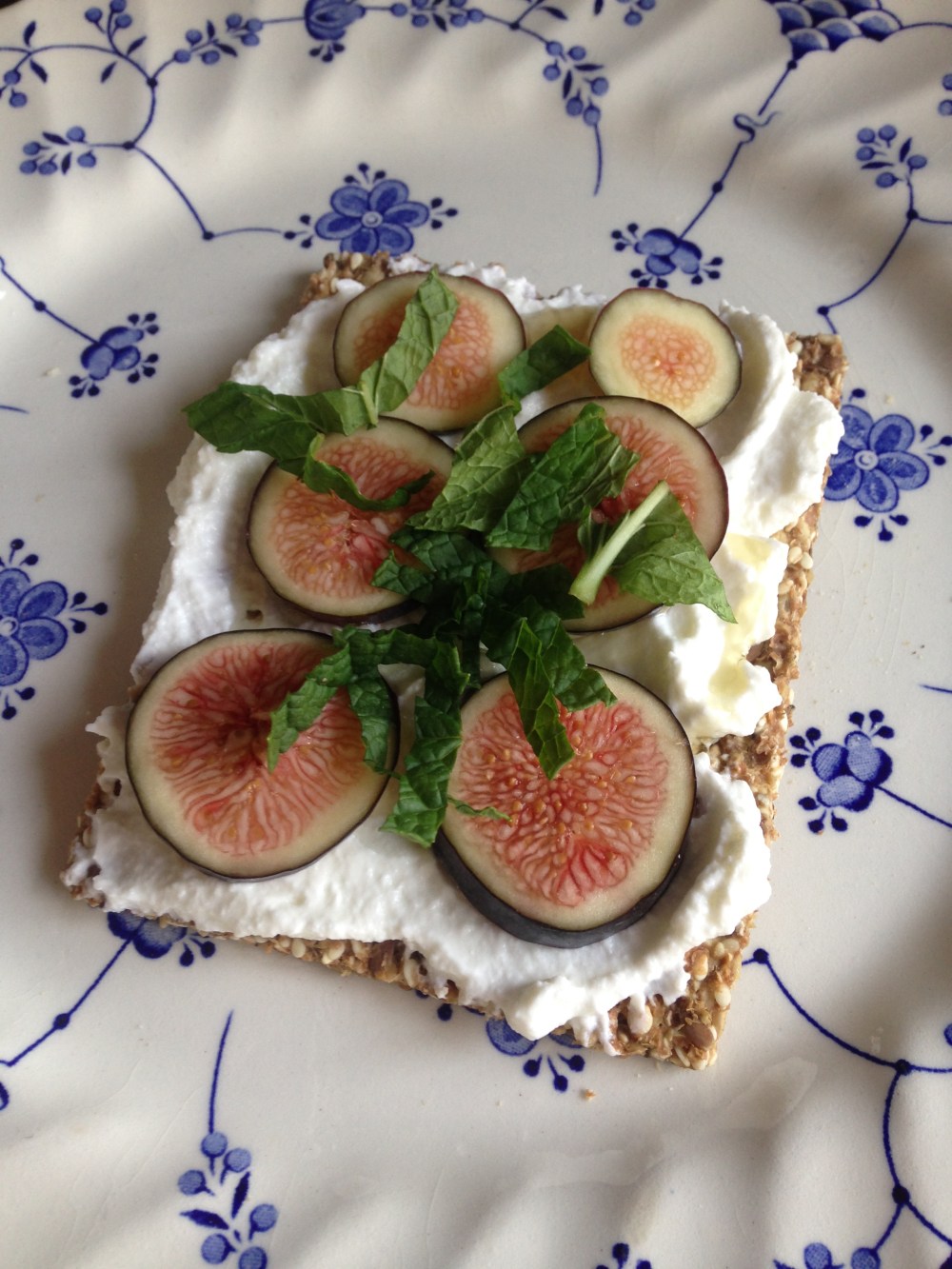 The beauty of figs is that you aren’t limited to dessert with them. They pair well with creamy cheeses, chicken, bacon and more. Pictured above are black mission figs on rye crisp bread topped with whole milk ricotta and fresh mint.