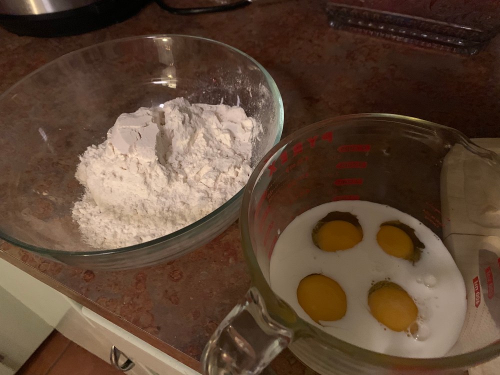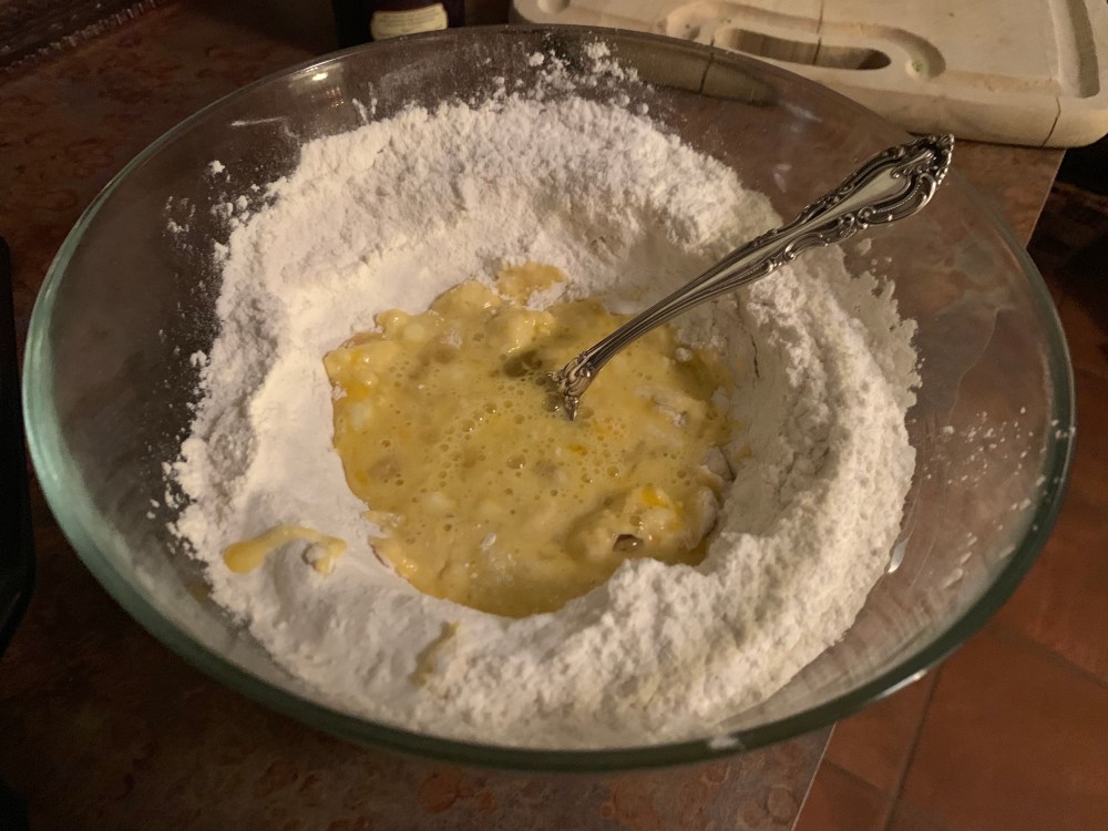 This is the tricky part, you’ll be starting and finishing batches of spaetzle simultaneously over boiling water and the dough inevitably gets everywhere, because it’s all over you’re hands. Try to just think of it as a fun part of the experience.