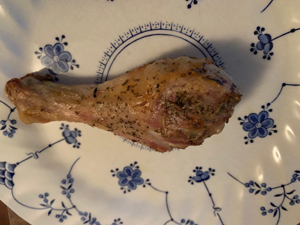 Fortunately, I was able to toss some drumsticks with herbes de Provence and air fry them to quickly make myself dinner with leftovers for tomorrow’s lunch. They were super good. I like my chicken crispy so I went 15 minutes per side at 400.