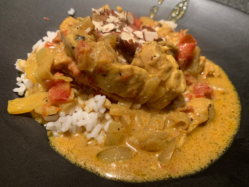 I want to try another version with heavy cream soon. I think that must be where the name butter chicken comes from. And maybe I’ll also try puréeing the veg to thicken the sauce.